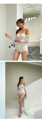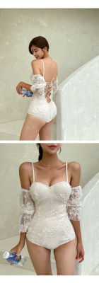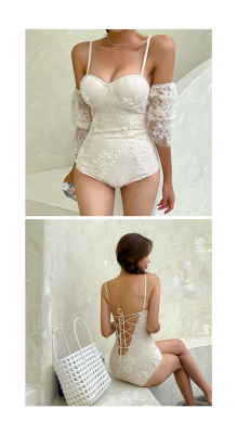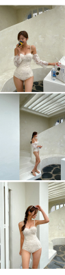 仙氣游泳衣女連體平角保守顯瘦遮肚韓國性感 網紅ins度假蕾絲泳裝