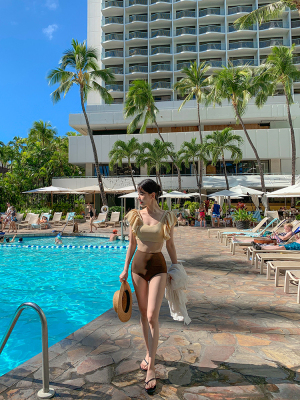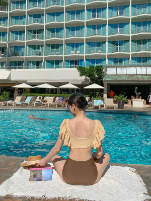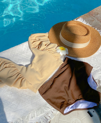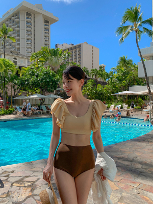 Swimsuit for women with bubble sleeves, pure desire style, separate body, sexy vacation vlogger style, hot spring luxury, bikini