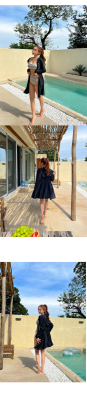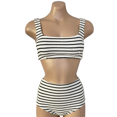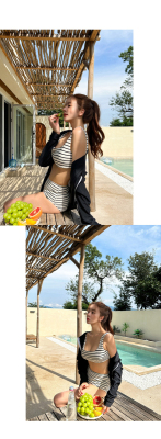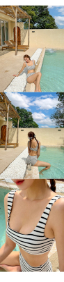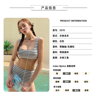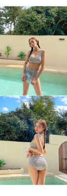 泳衣女ins性感溫泉分體高腰比基尼條紋小胸聚攏顯瘦遮肚游泳衣