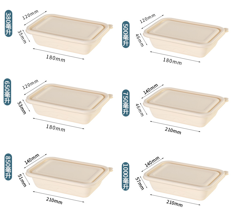 Disposable cornstarch lunch box, rectangular bento rice box, eco-friendly and biodegradable, partitioned takeout packing box, soup bowl