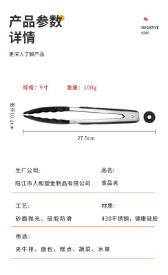 Silicone Food Clips, Silicone Nylon Food Clips, 9-inch BBQ Clips, Bread Clips, Heat-insulating Stainless Steel Clips