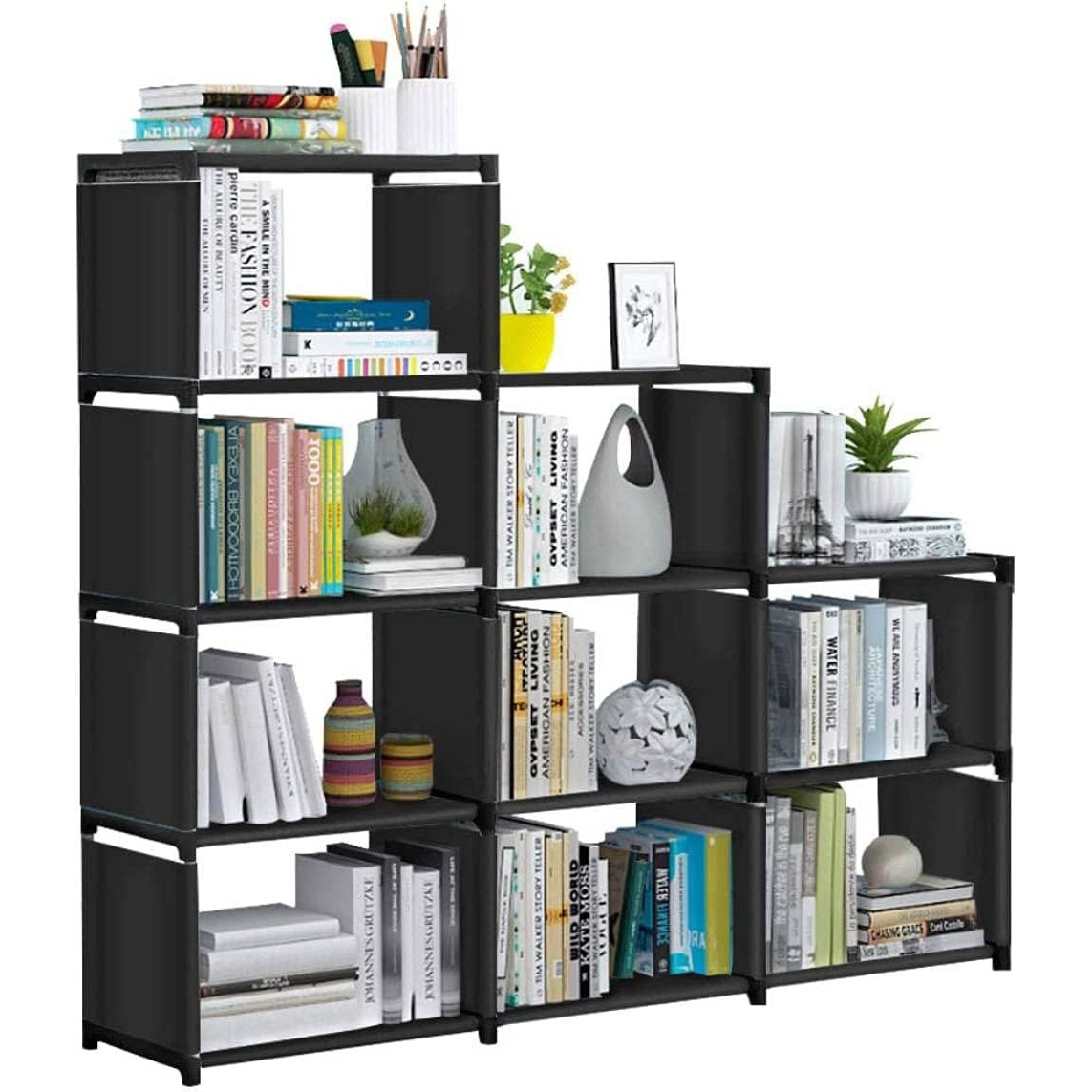 Double-row 8-grid bookshelf in black