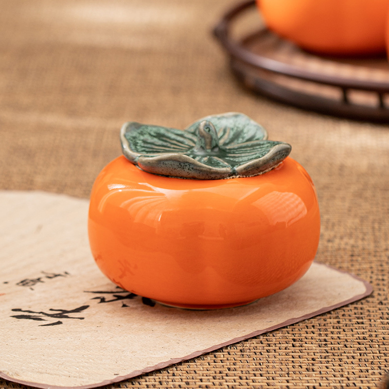 創意陶瓷柿子茶葉罐批發小號柿柿如意迷你密封儲物罐喜糖罐糖盒
