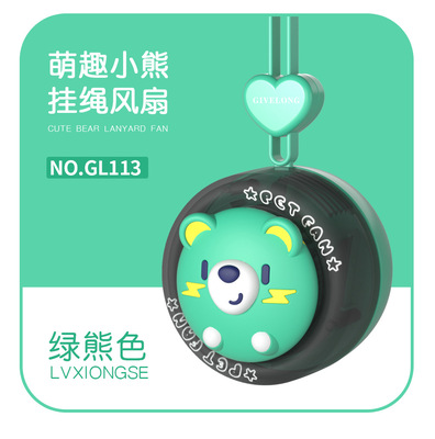 Cute Bear Lanyard Fan [Green]