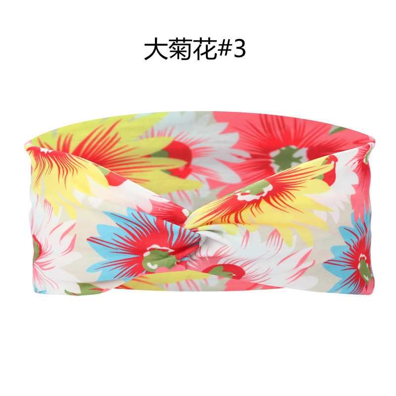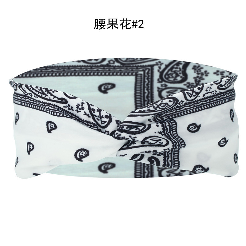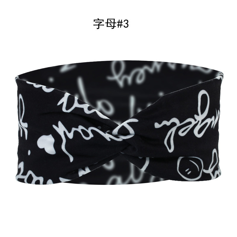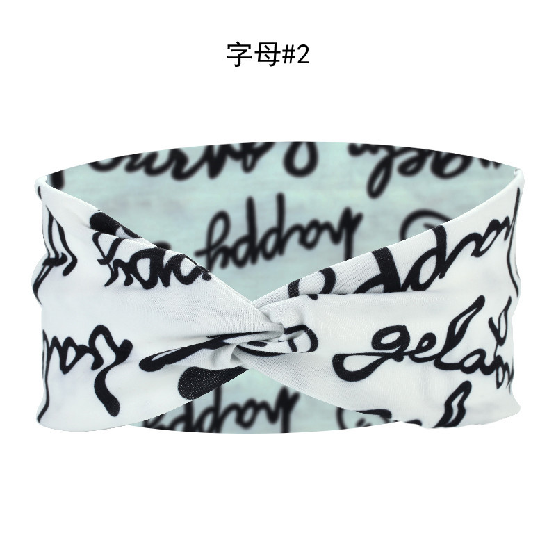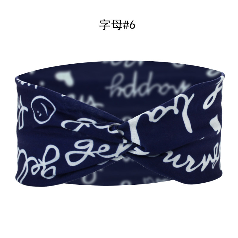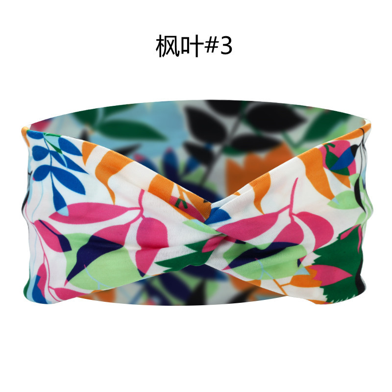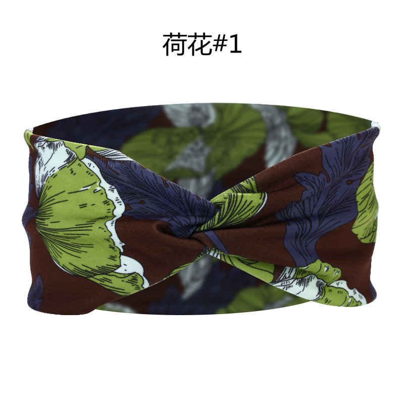 Amazon Cross-border European and American knotted crossover elastic headband with cotton print for sports and yoga, can print patterns