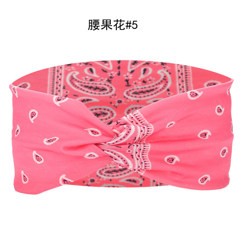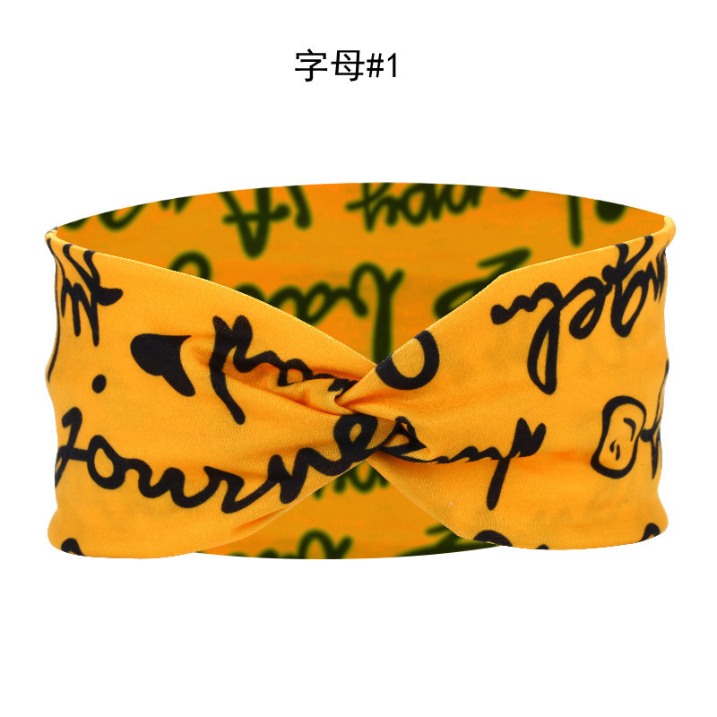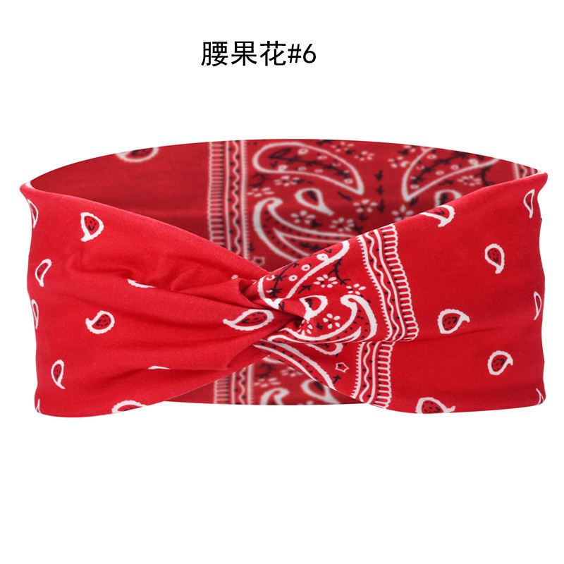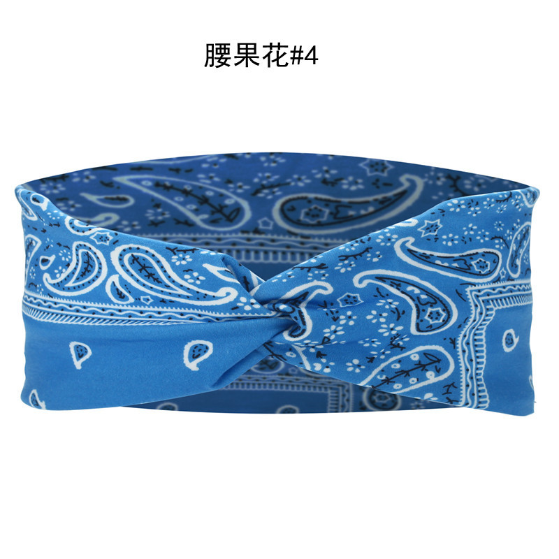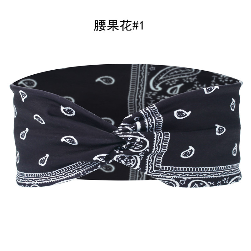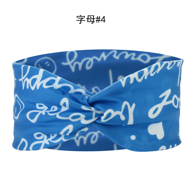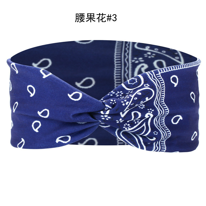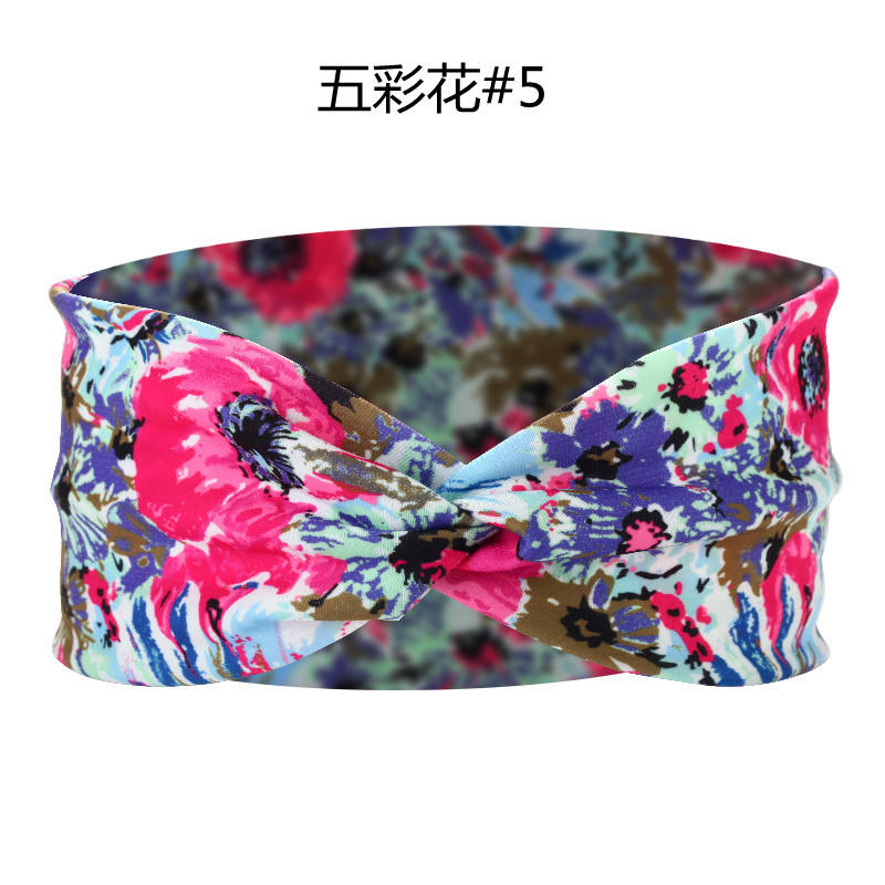 Amazon Cross-border European and American knotted crossover elastic headband with cotton print for sports and yoga, can print patterns
