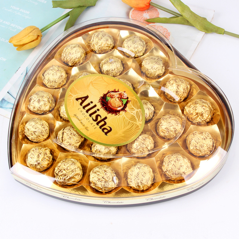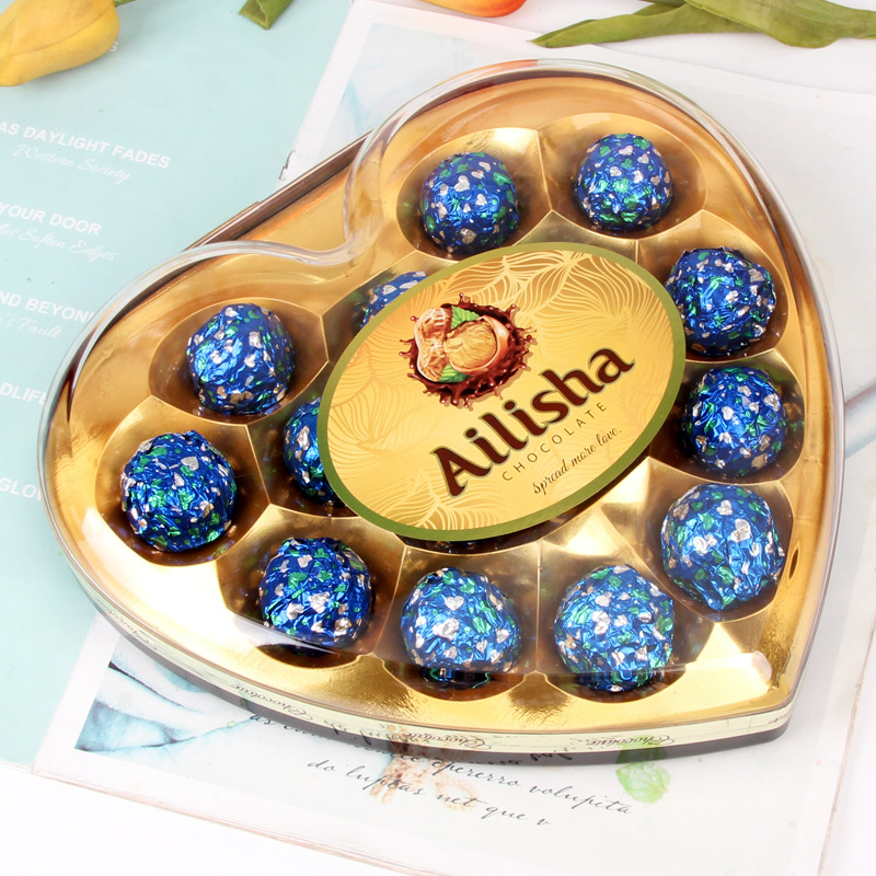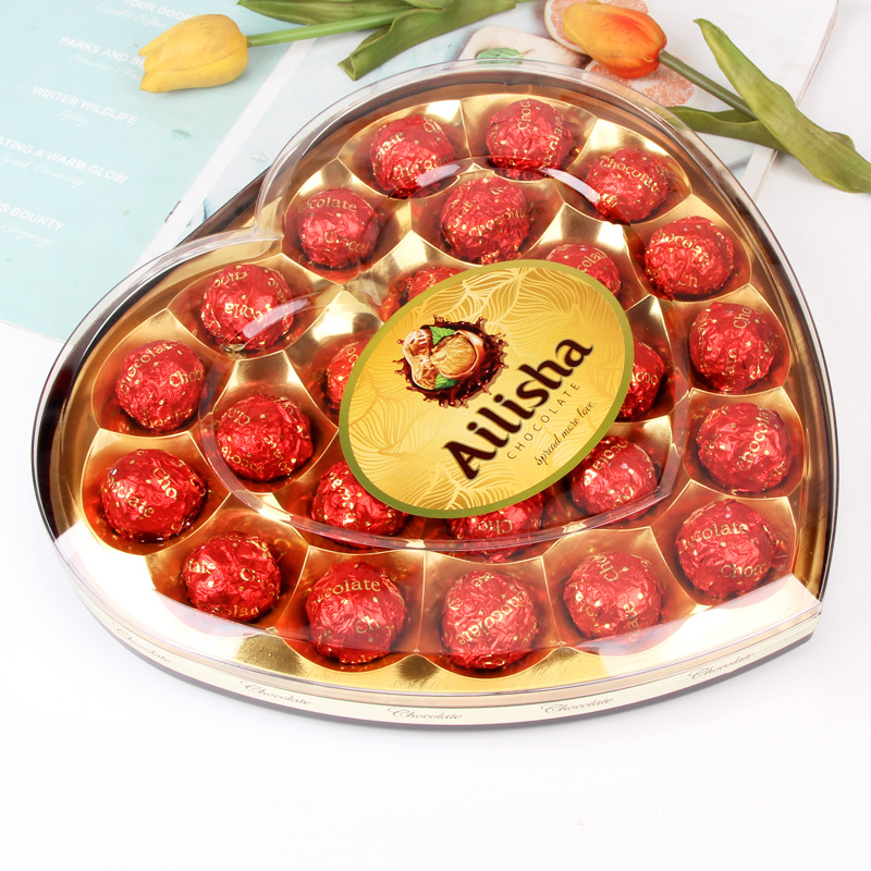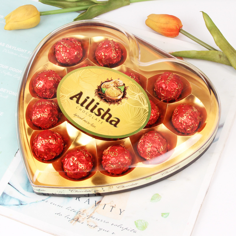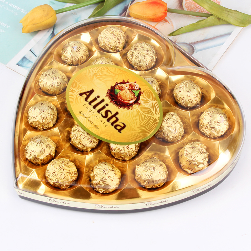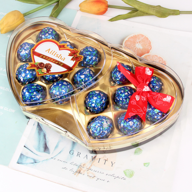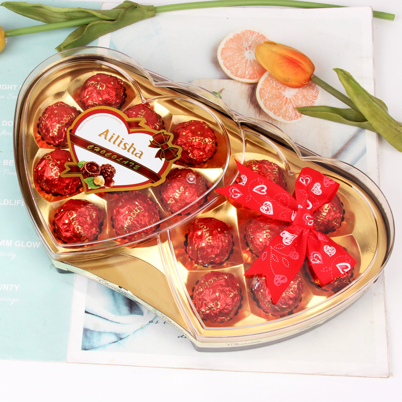 Interest Three-Seed Heart-Shaped Chocolate Candy Gift Box Valentine's Day Gift Gift Leisure Snack Wedding Candy New Year Goods Wholesale