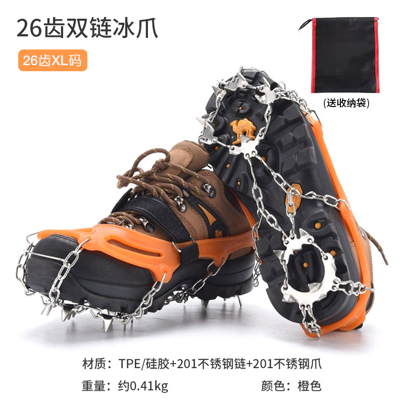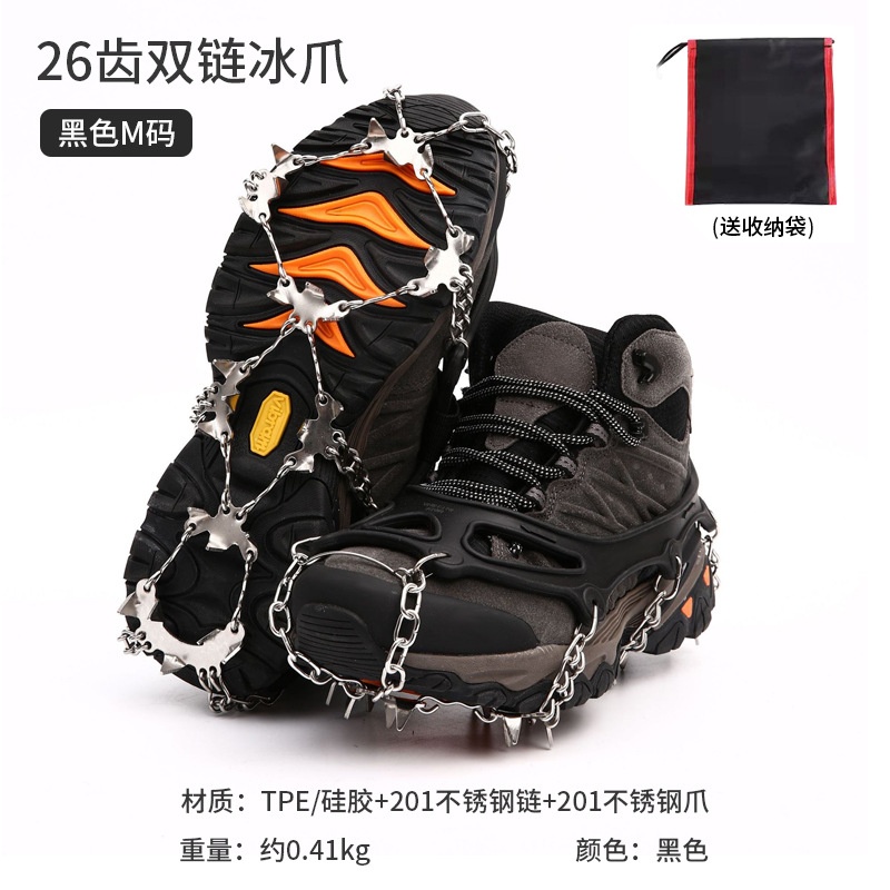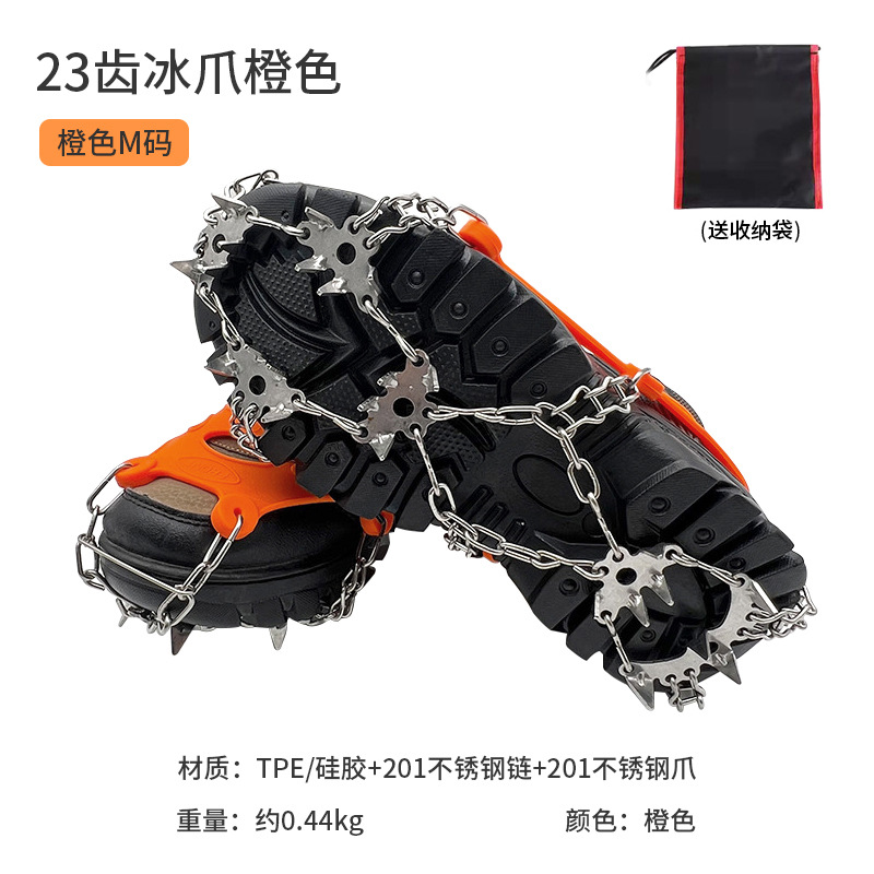 Outdoor 19-tooth ice claws anti-slip shoe covers adult snow ice surface mountain climbing anti-fall 23-tooth snow claws stainless steel shoe nails chain