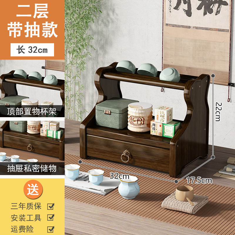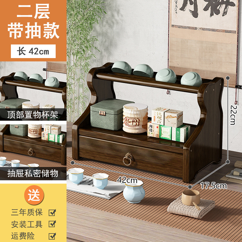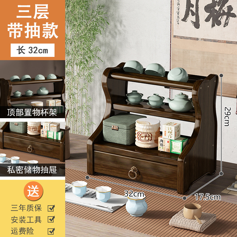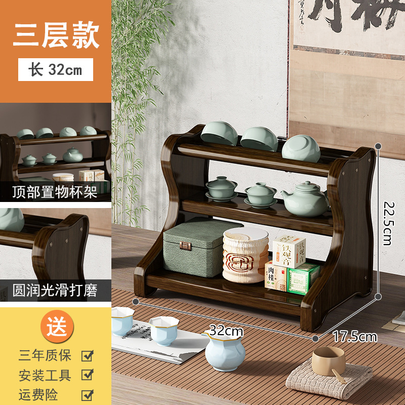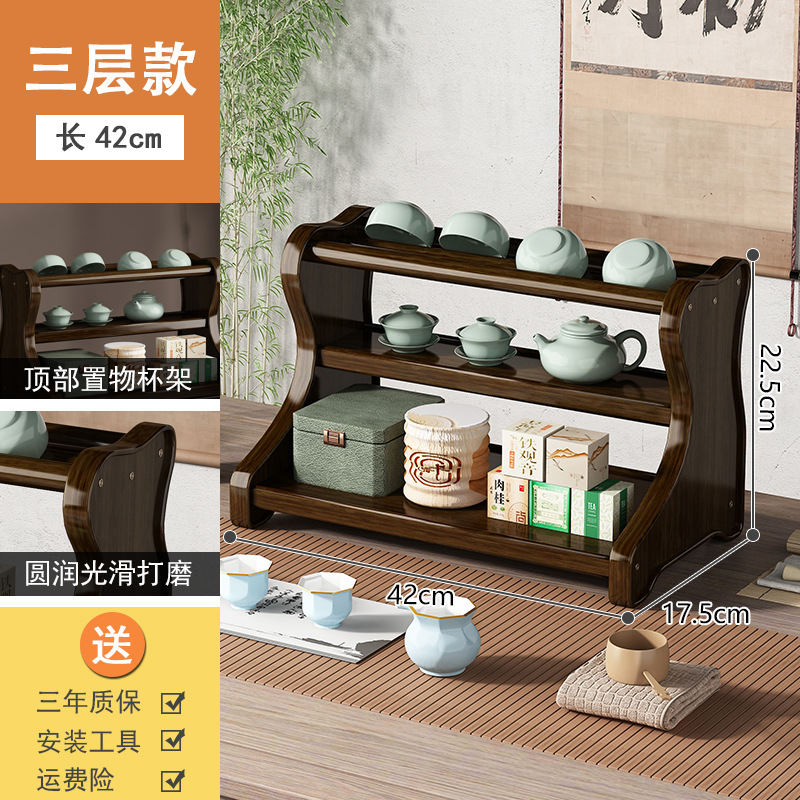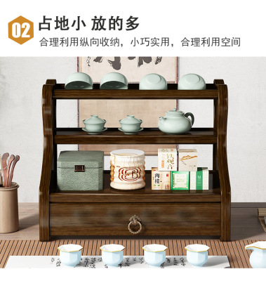 Bookshelf Display Shelf Desk Tea Set Stand Tea Stand Multi-purpose Shelf Solid Wood Chinese Simple Sand Pot Tea Pot Display Stand Storage