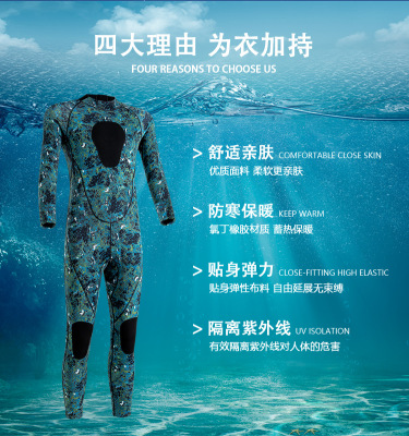 Men's Insulated Anti-Cold 3mm Wet Winter Swimming One-Piece Snorkel Suit Camouflage Surf Wetsuit Diving Suit for Women