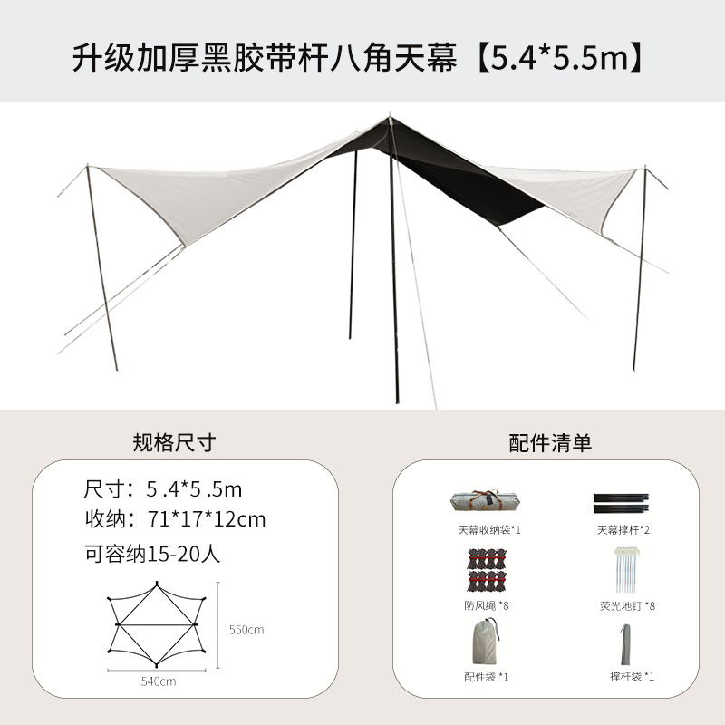 Outdoor Silver Coated Sky Tent Sunshade Camping Picnic Camping Sunshade Waterproof Hexagonal Black Rubber Silver Glue Sky Tent