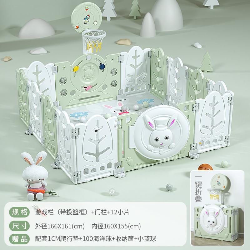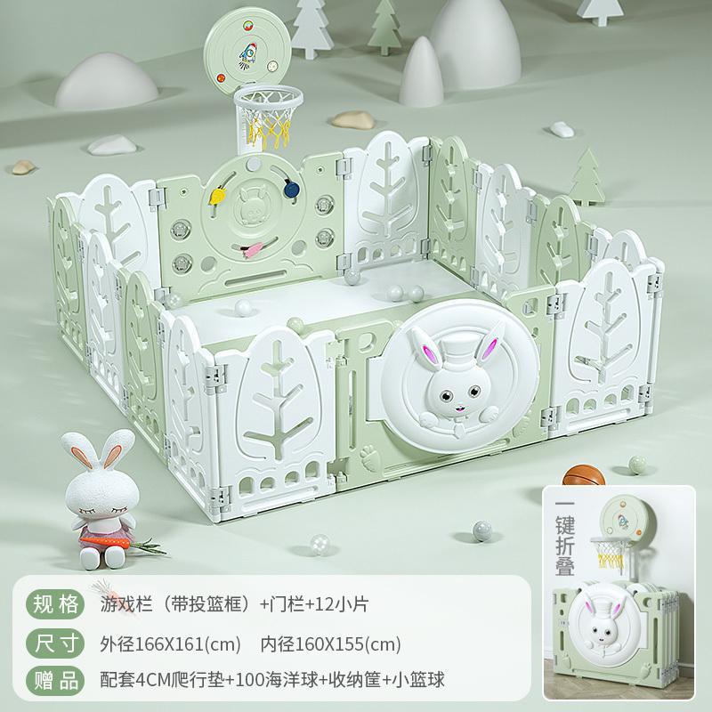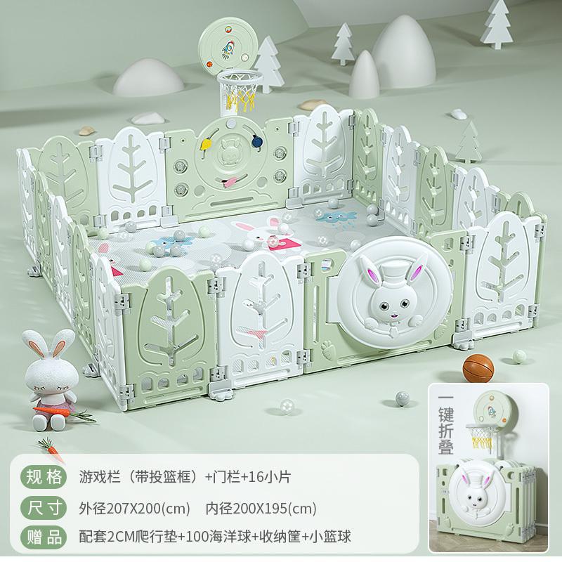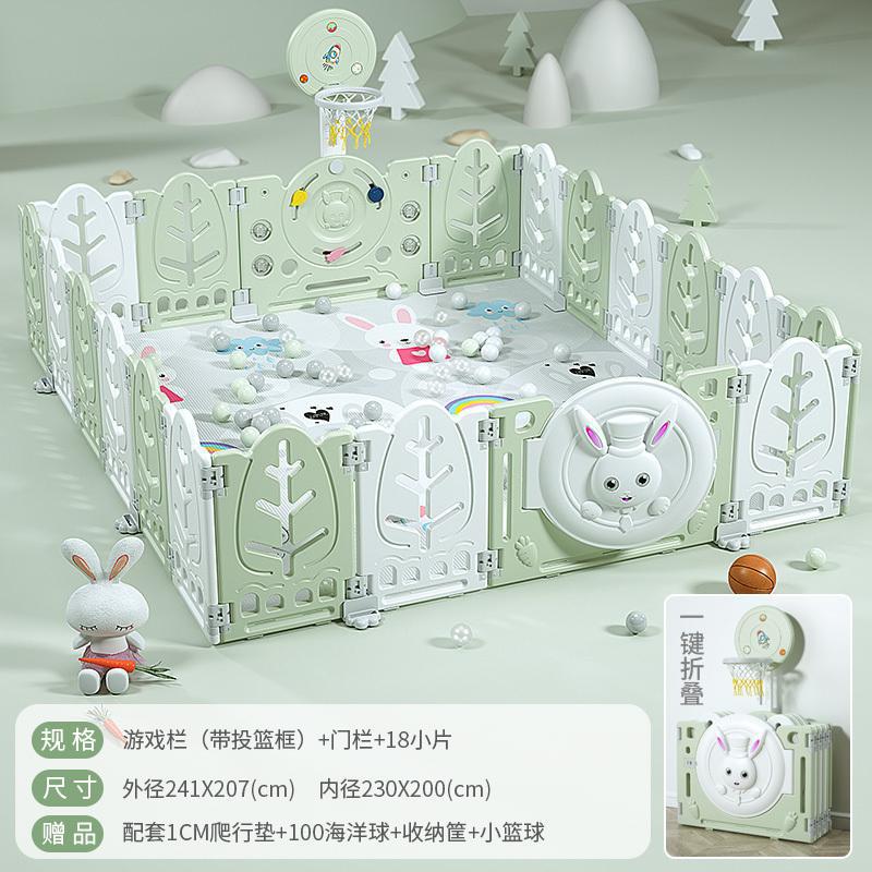 Fresh Green【16+2】with Basketball Hoop + 2cm Mat + Ball Pool + Storage Basket