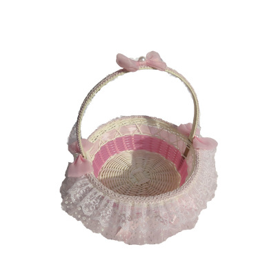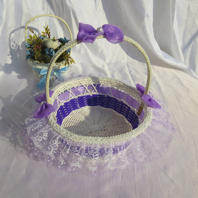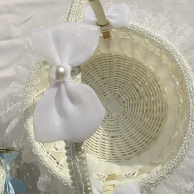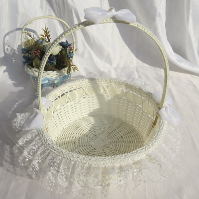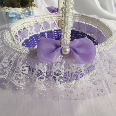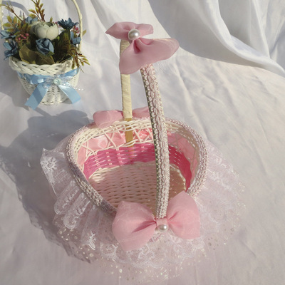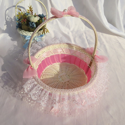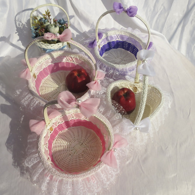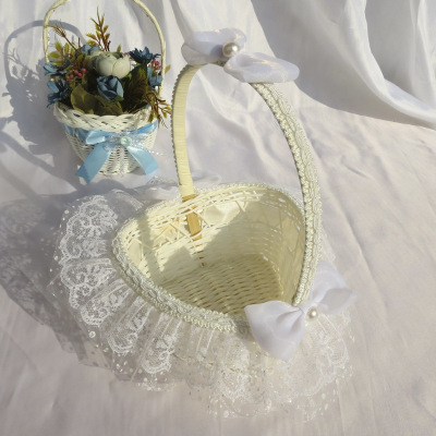 廠家供應婚禮心形撒花瓣籃 花童手提花瓣籃 手工編織玫瑰小花籃