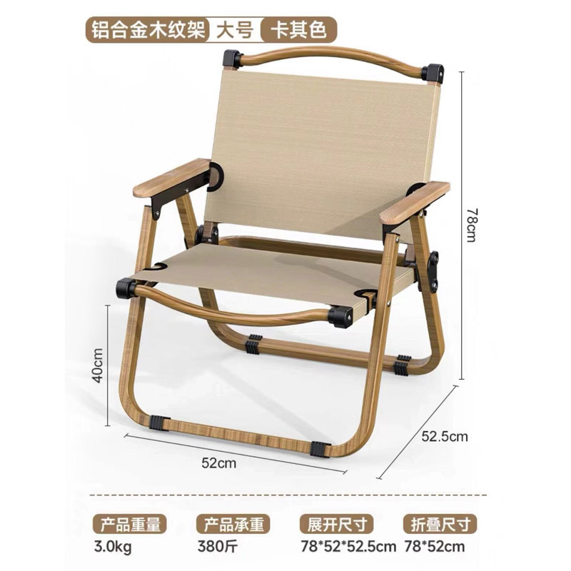 Aluminum Alloy - Large Wood Grain Frame (Khaki Fabric)