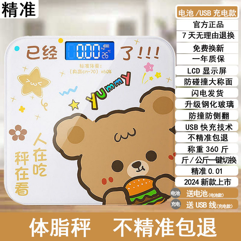 Smart and Precise Body Fat Scale, Home Fat Scale, Adult Bluetooth Scale, Human Body Scale, Cartoon Small Electronic Scale