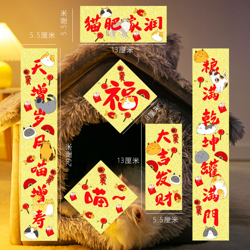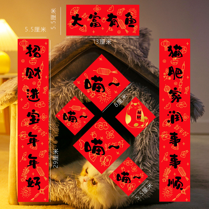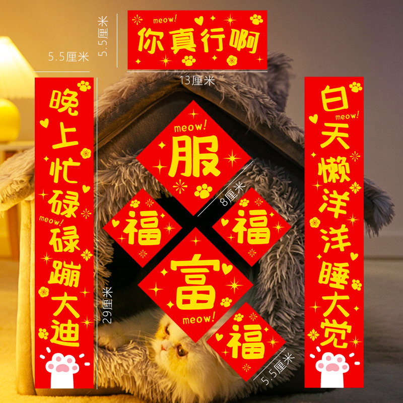 2024 Mini Couplets Dog and Cat House Computer Sticker Spring Festival Couplets for Fun Dragon Year New Year Spring Festival Decoration Couplets