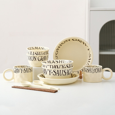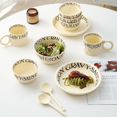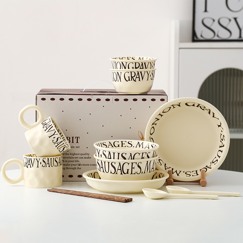 ins奶油風陶瓷餐具禮盒裝二人食法式英文碗碟盤套裝銀行伴手禮