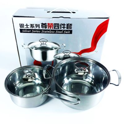 Gift set of four-piece cookware combination, thick stainless steel soup pot two-piece set, large gift box with pot set for wholesale