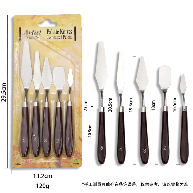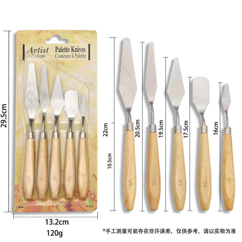 博藝宣跨境不鏽鋼木柄水粉水彩調色顏料美術專用油畫刮刀鏟刀套裝