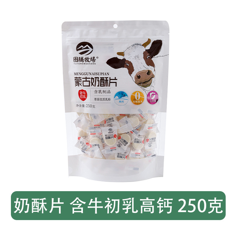 Sugar-Free Cow Colostrum High-Calcium Plain Milk Snack for Children, Inner Mongolia Baby Dry Eating Puff, 250g Snack