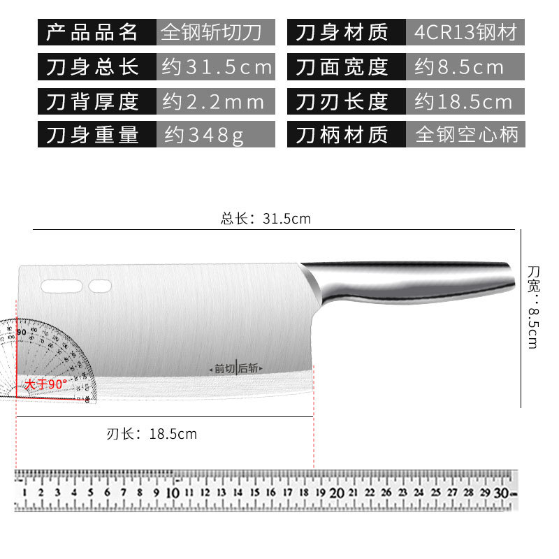 不鏽鋼菜刀全鋼斬切刀斬骨刀鋒利免磨切片刀廚房切肉刀切菜刀