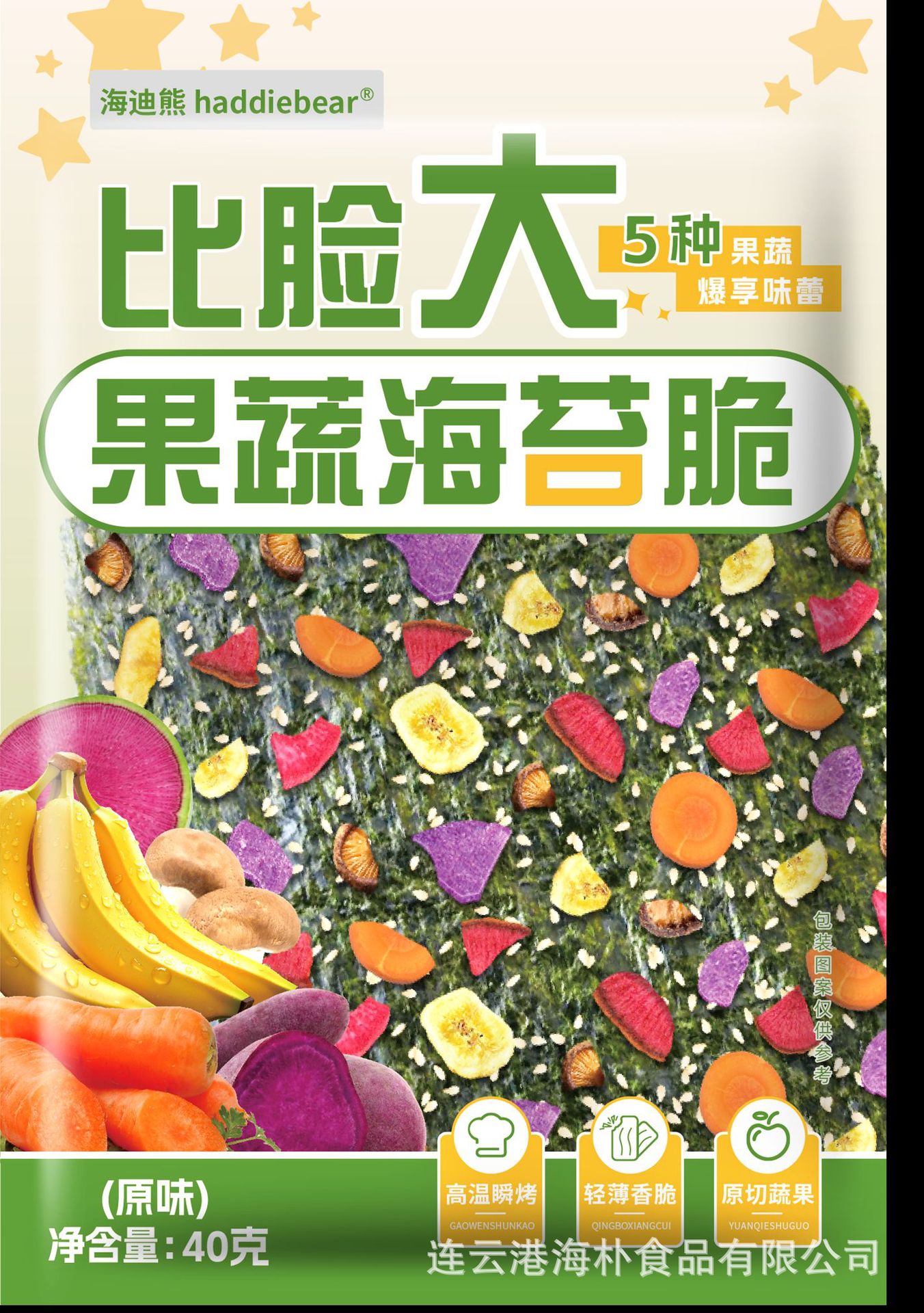 Haidi Bear Fruit and Vegetable Nori Crispy Sandwich Snack for Kids, No Additives, Ready-to-Eat Nori