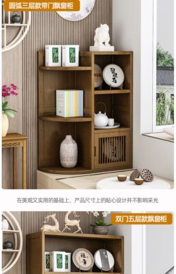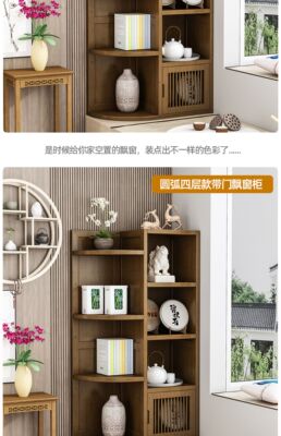 Five-layer curved arc window cabinet with door