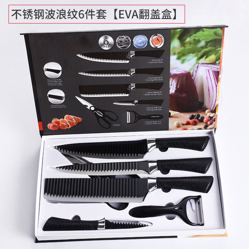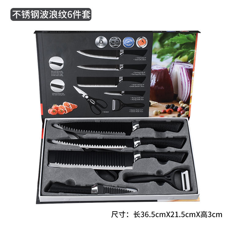 Factory Black Wave Pattern 6-Piece Knife Set 238A Gift Box Set for Export Wholesale, Supermarkets and Malls