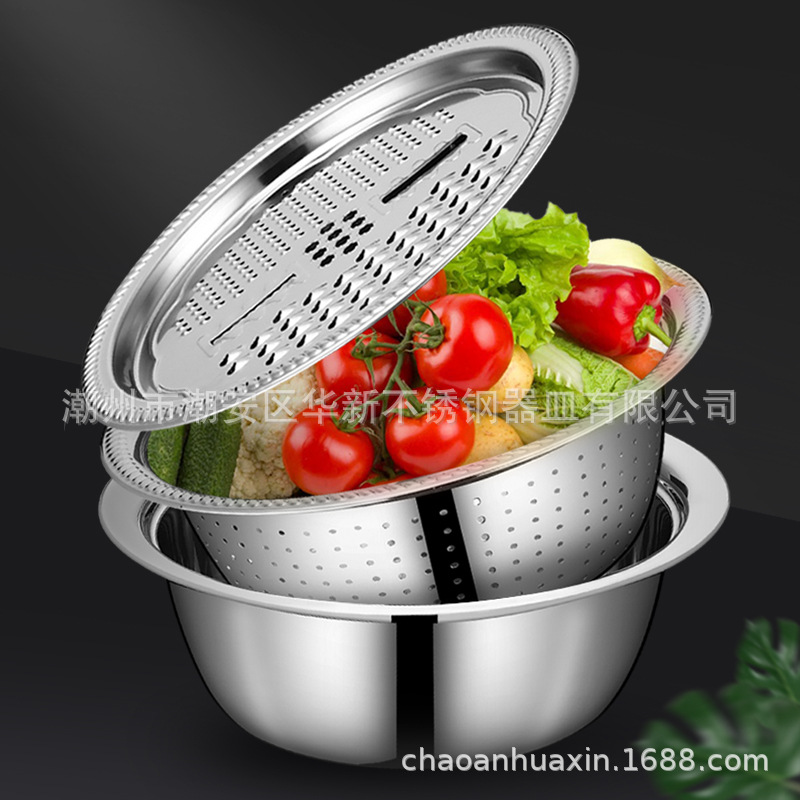 304 Stainless Steel Vegetable Chopper Potato Shredder Bowl Chopping Tool Home Drain Basket Gift Set Kitchen Three-Piece Set