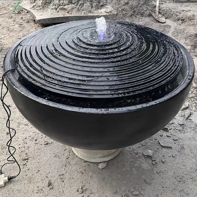 日式石缽黑山石水缽盆庭院流水景觀禪意擺件新中式青石養魚池石盆