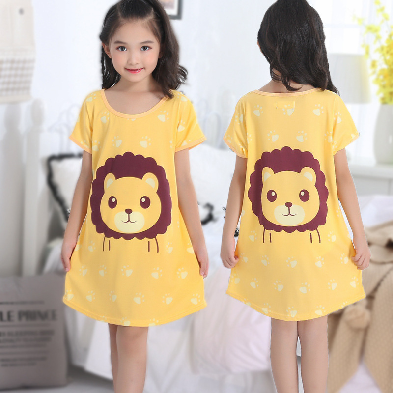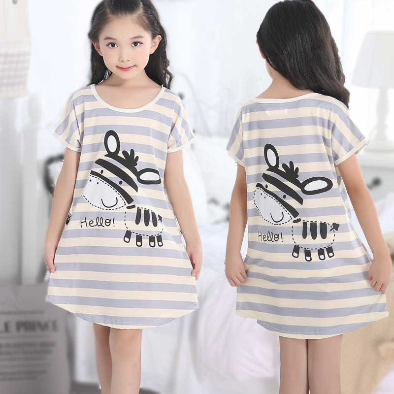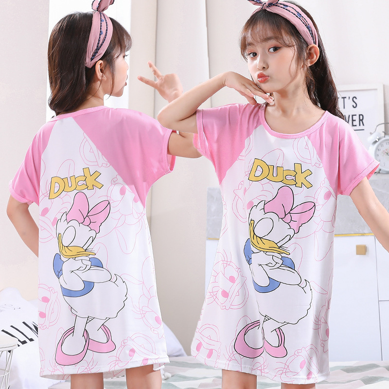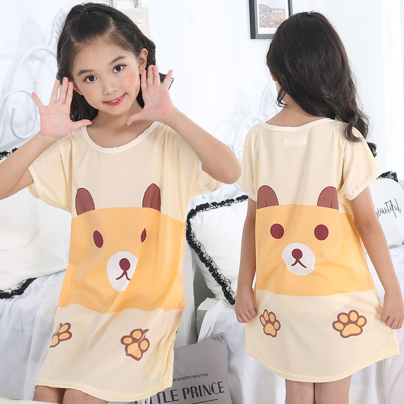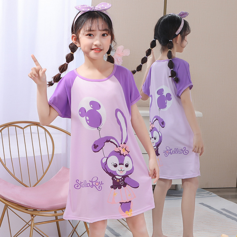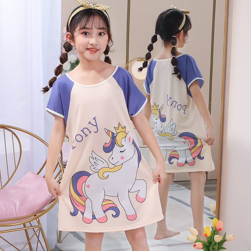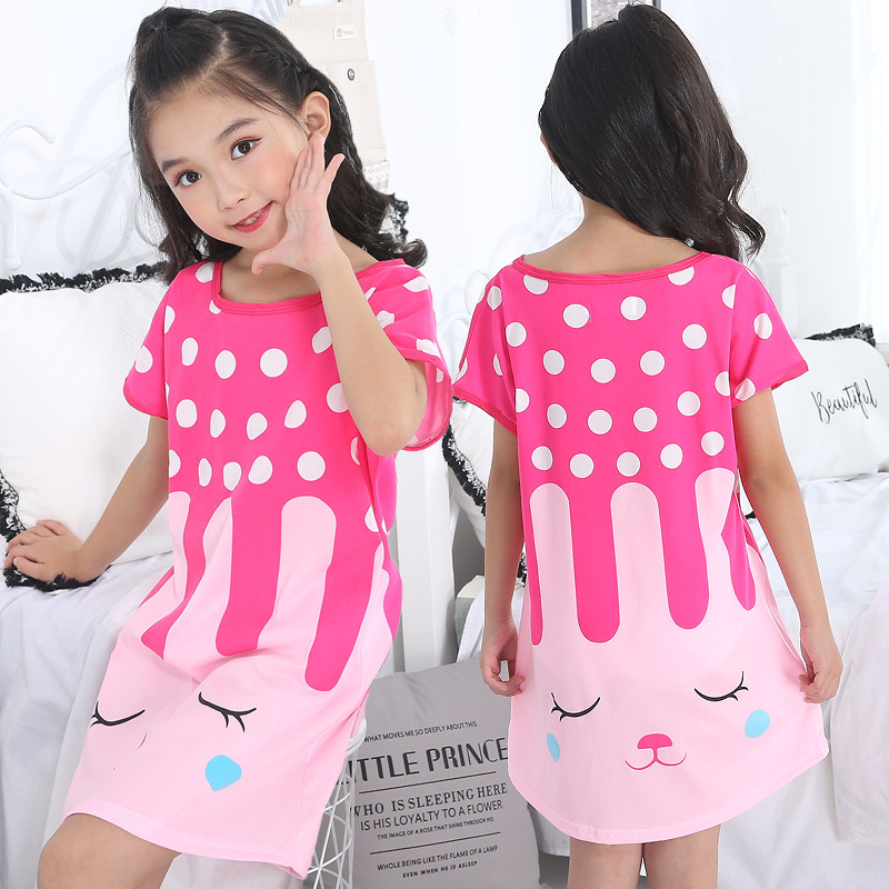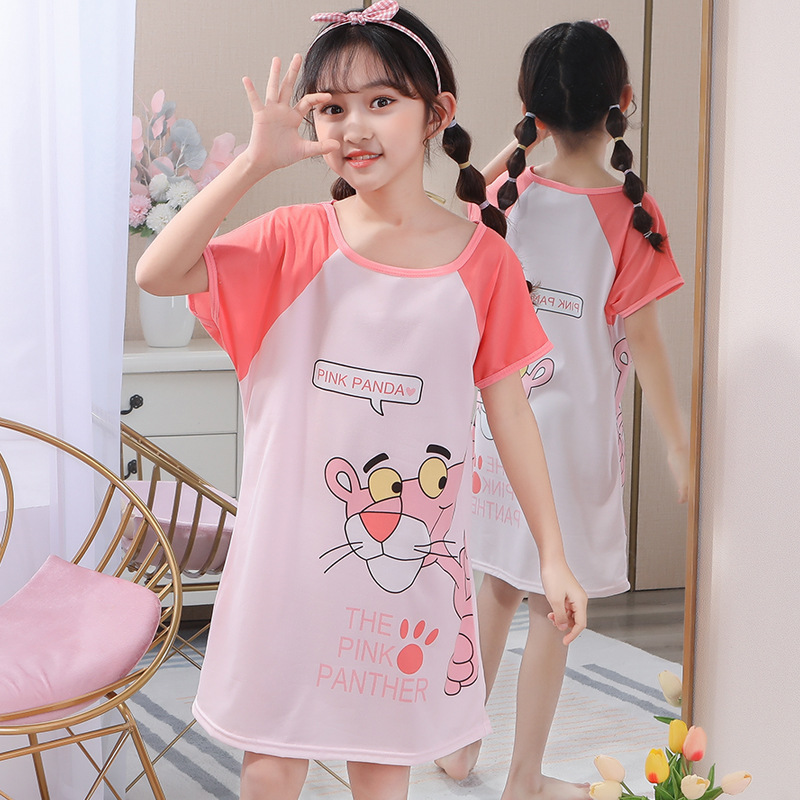 Children's Summer Short-Sleeve Pajamas for Girls and Toddlers, Lightweight Cartoon Nightgowns for Young Girls, Family Wear for Big Kids