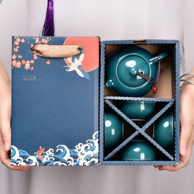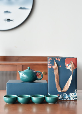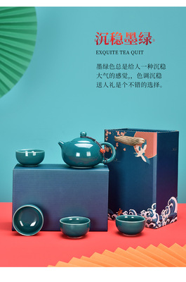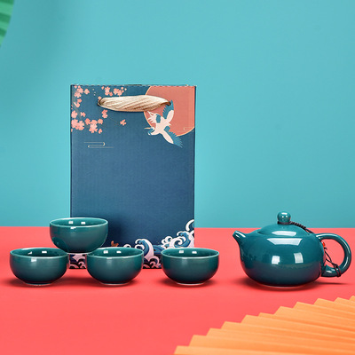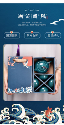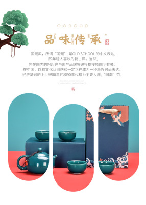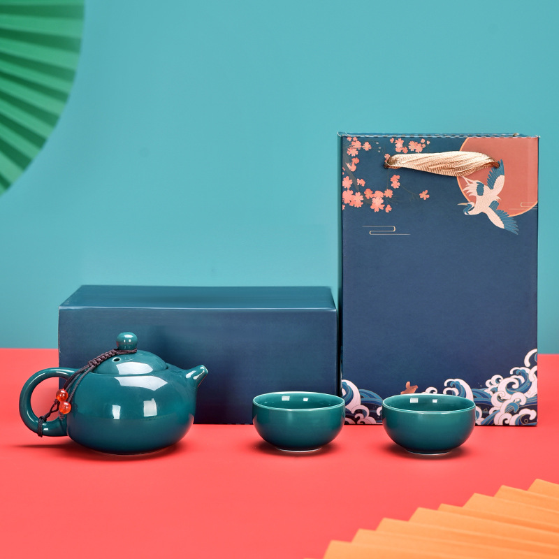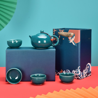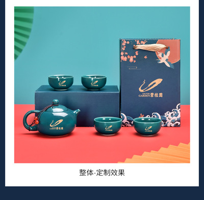 Guochao-style tea set travel kit, business opening gift set with logo, companion for corporate events.
