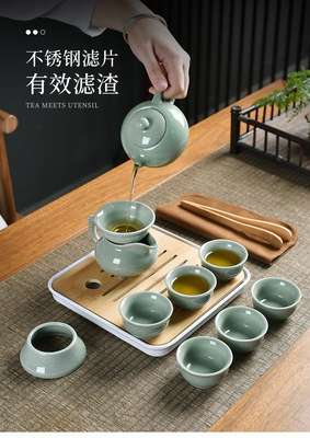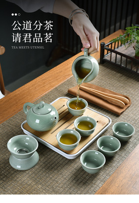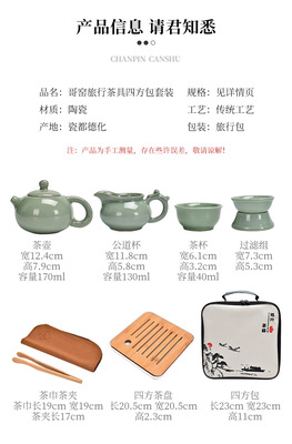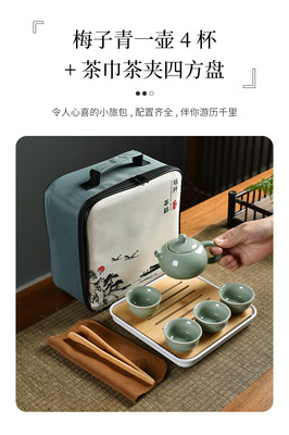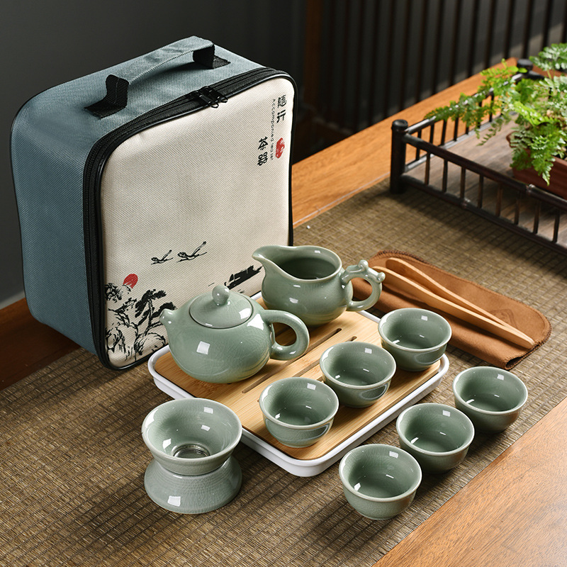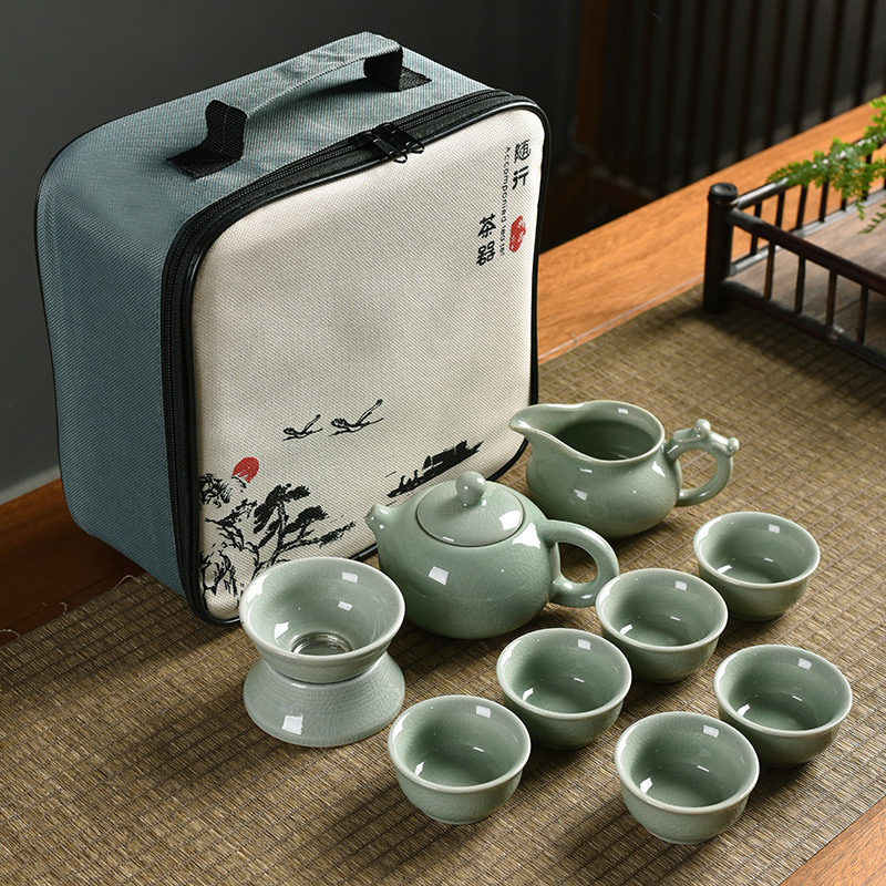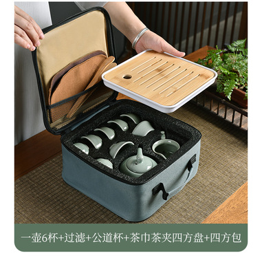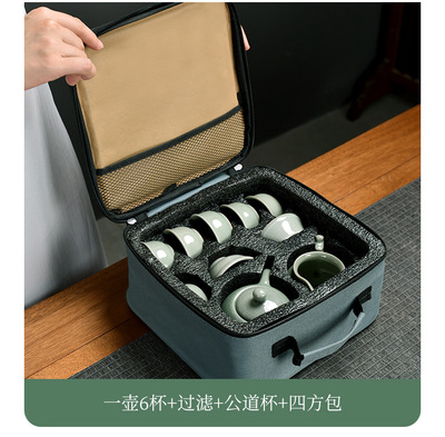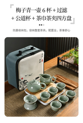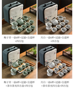Meizi Qingge Kiln one pot six cups + filter set + shared cup + tea towel + tea tongs + square plate + travel bag