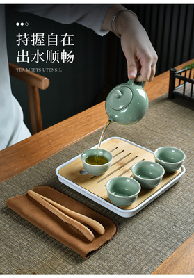 Moon白哥窑 one pot + four cups + travel bag