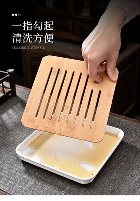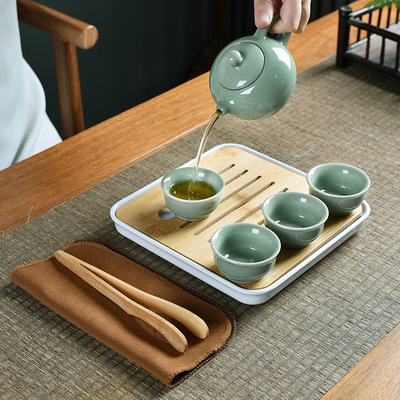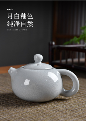 Moonwhite Ge Kiln one pot with four cups + tea cloth + tea tongs + square plate + travel bag
