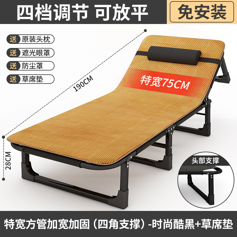 夏日熱銷【特寬床寬75cm加固】酷黑- 送清涼藤蓆墊