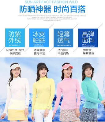 Women's Summer Golf Sun Protection Shirt with Cooling Ice Silk Base Layer Long Sleeve T-Shirt UV Protection Breathable Long Sleeve