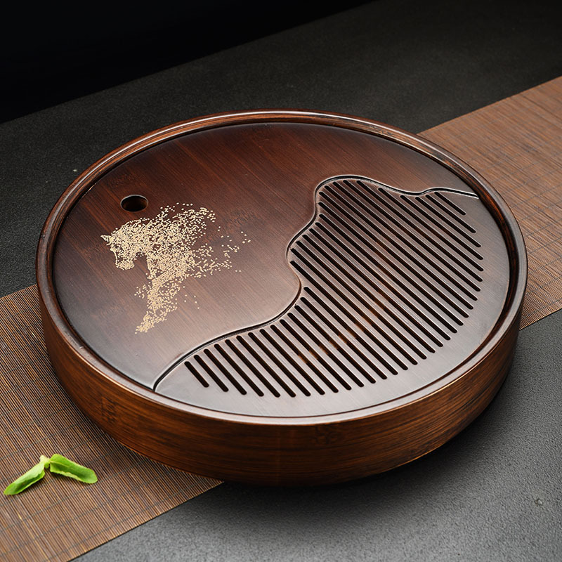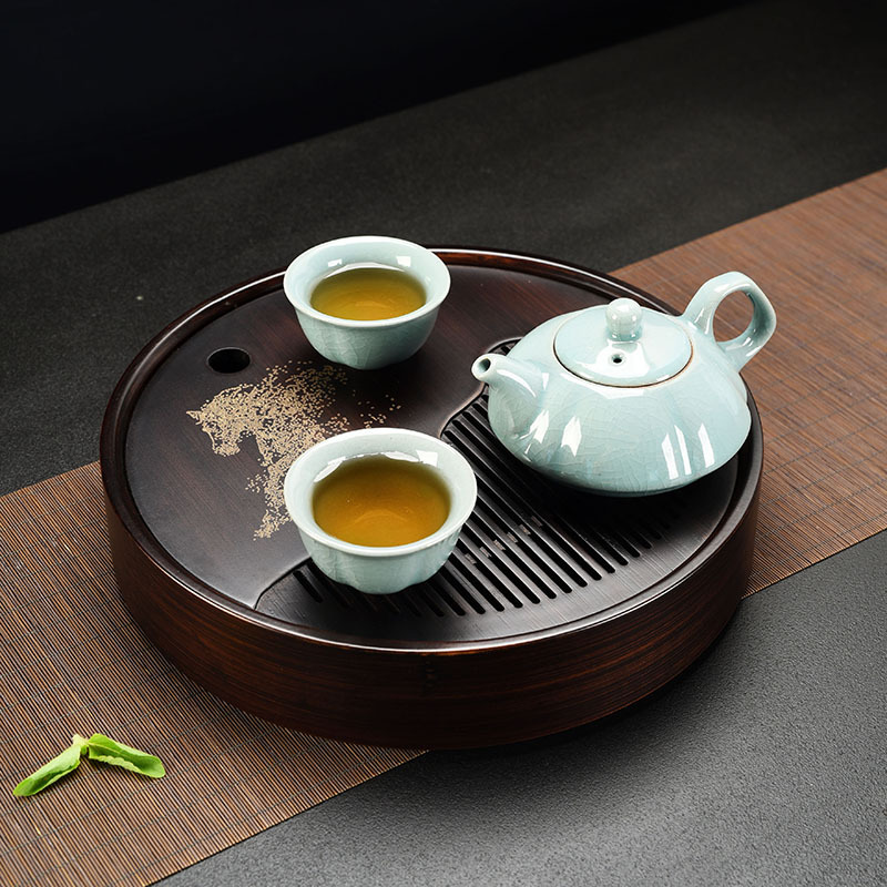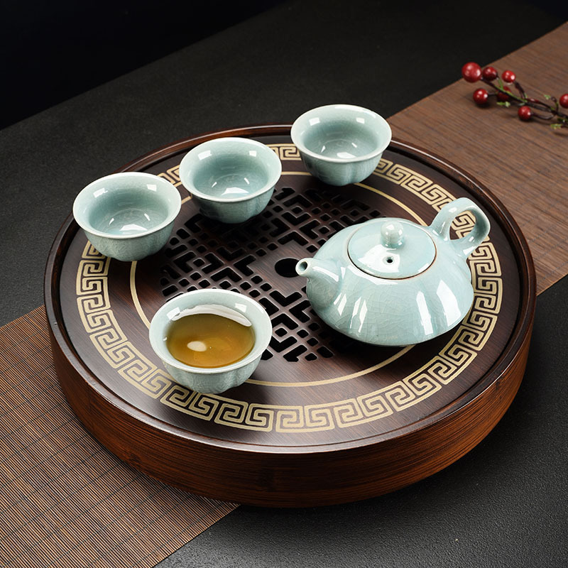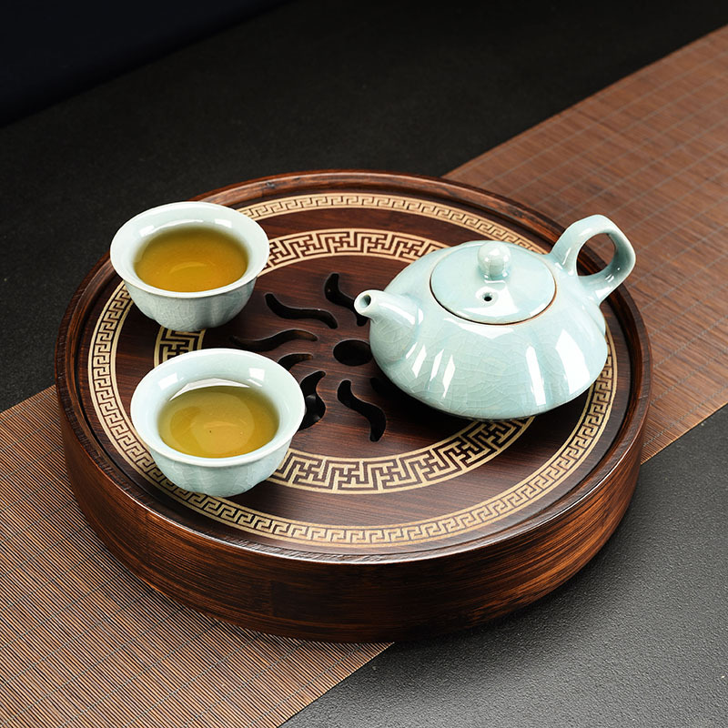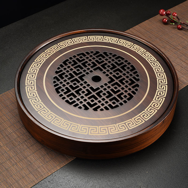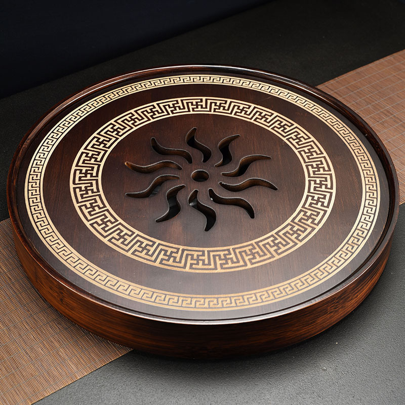 Nan bamboo made Chinese traditional elegant tea tray for hosting guests, tea table set for office, home and indoor use, for making friends and tasting tea, round shape