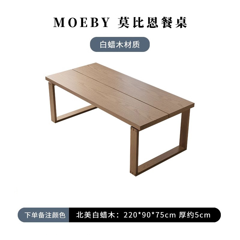 Table: 220*90*75 cm, board thickness 5 cm (White蜡木 model)
