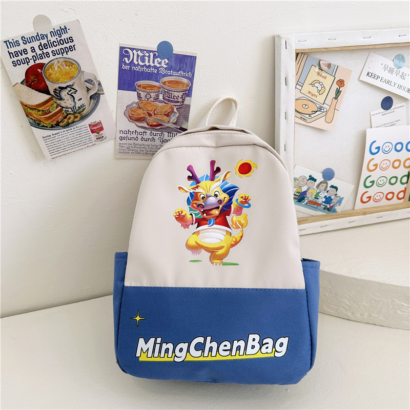 2024 New Cartoon Print Canvas Double Shoulder Bag for Kindergarten Boys and Girls, Baby Small School Bag Children's Double Shoulder Backpack Trendy