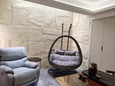 Double-handled beige twisted wave double pole white with seat cushion + carpet