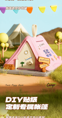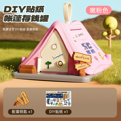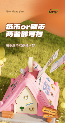 Pink Tent Savings Bank [Color Box - Includes Theme Sticker]