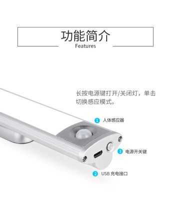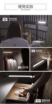 LED Cabinet Light with Strong Magnetic Adhesion, Cordless USB Charging, Light-Controlled Human Body Sensor, Portable Energy-Saving Bedroom Lamp