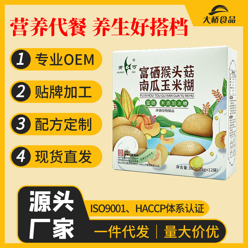 Manufacturer wholesale processing of Huang Gai rich selenium monkey head mushroom yam pumpkin corn paste 159 mixed grain meal replacement powder