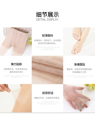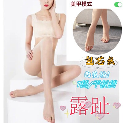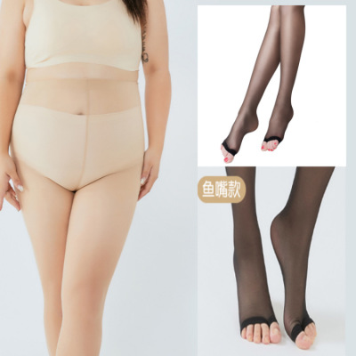大碼絲襪女胖mm魚嘴絲襪露趾薄款防勾絲包芯絲連褲襪美腿絲襪批發