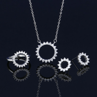 South Korea Dongdaemun Trendy Women's Micro-Inlaid Zircon Fashion Index Finger Personalized Circle Set Necklace, Ring, and Earrings—Wholesale
