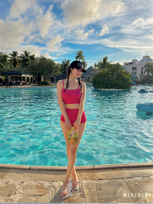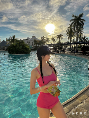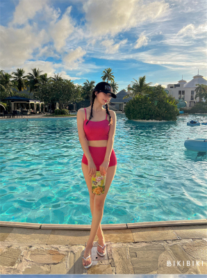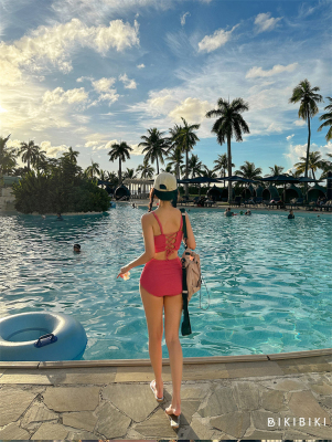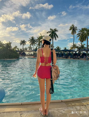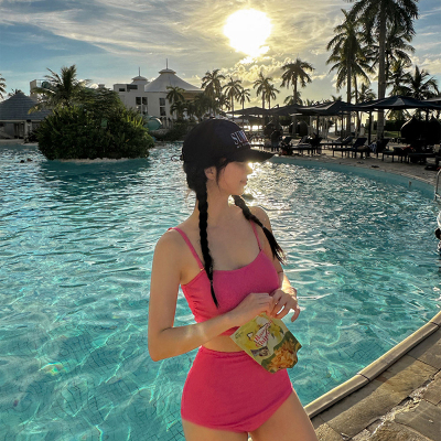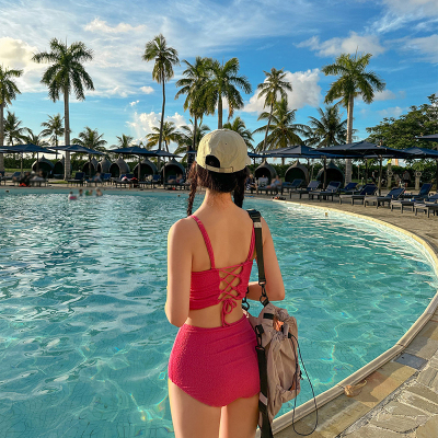 韓版2024新款泳衣女高級感分體高腰綁帶顯白純欲風海邊度假裝