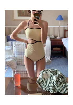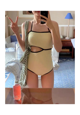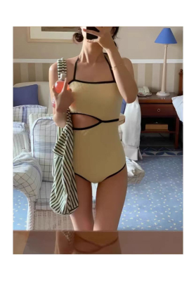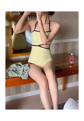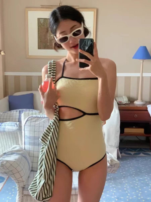 TAKU|韓國少女ins帶胸墊連體泳衣泡溫泉顯瘦遮肉可愛度假黃色保守