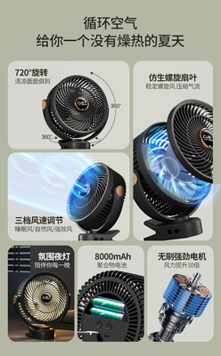 F2 Multifunctional Clamp Fan Blue Charging Model with Lighting