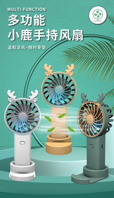New cartoon-style deer mini USB portable high-wind electric fan phone stand student gift drop shipping